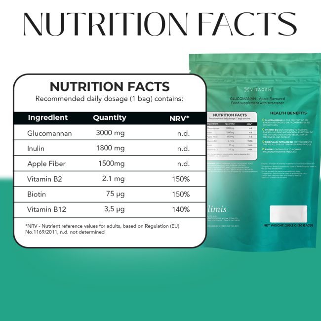 Jedan od glavnih sastojaka Slimis-a je glukomanan iz korena konjaka, koji pomaže u smanjenju apetita i unosa kalorija tako da ćete se osećati siti duže vreme. Takođe sadrži vlakna iz jabuke koja pospešuju varenje i inulin iz cikorije koji podstiče zdravlje digestivnog sistema i održava osećaj sitosti. Radeći zajedno u Slimis-u, ove komponente podržavaju gubitak težine, poboljšavaju celokupno zdravlje sistema za varenje i pomažu vam da živite zdravijim i aktivnijim životom.