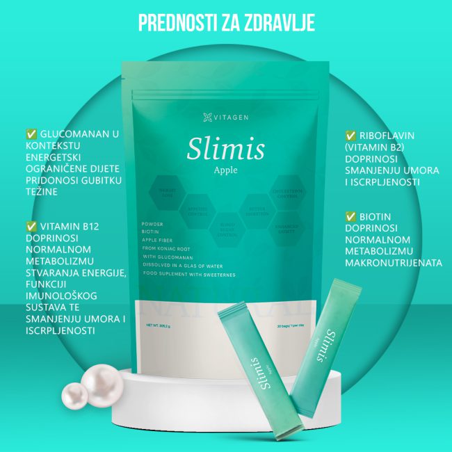 - Slimis sadrži glukomanan, koji doprinosi prirodnom mršavljenju tako što vam pomaže da se osećate siti.